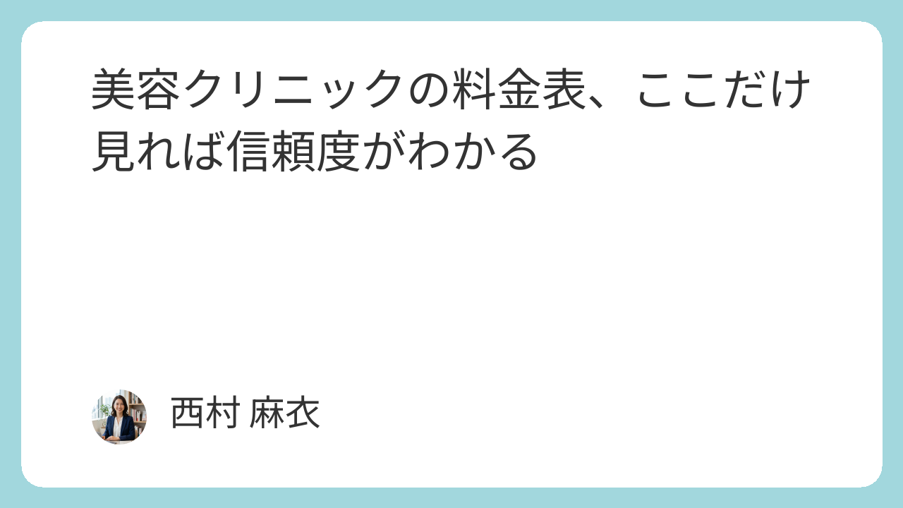 料金表の読み方を知っておくだけで、カウンセリング前の段階でクリニックをかなり絞り込める。「高い・安い」ではなく「透明・不透明」で判断する習慣が、美容医療選びで後悔しないための第一歩です。