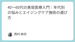 40代・50代・60代それぞれの肌悩みと、年代に合ったエイジングケア施術の選び方を元クリニックカウンセラーが解説。施術カテゴリの基礎知識から医師選びの基準まで。