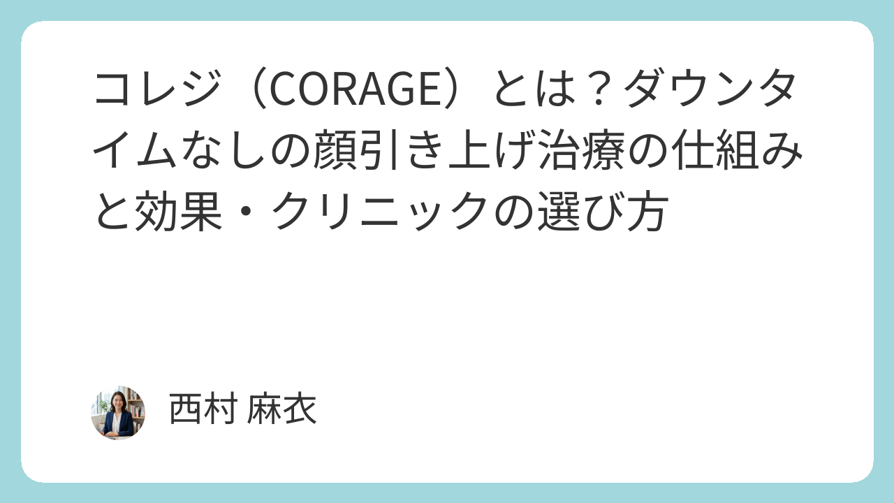 コレジ(CORAGE)とは?ダウンタイムなしの顔引き上げ治療の仕組みと効果・クリニックの選び方